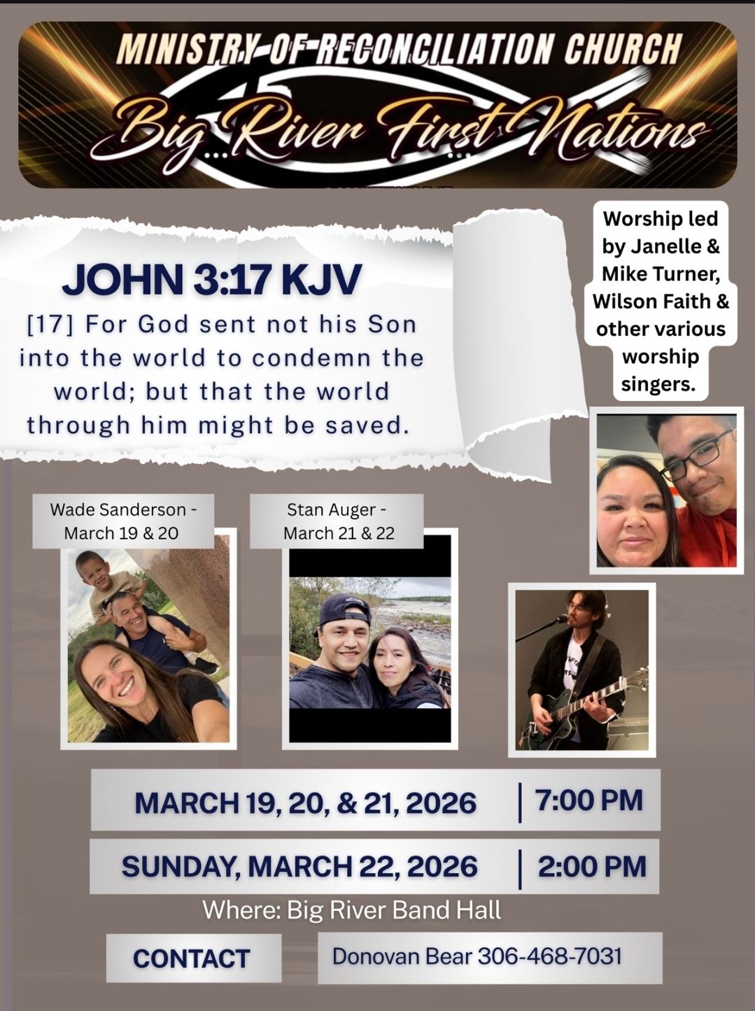 Come out March 19-21, 7pm nightly at the Big River Band Hall and be in the presence of Jesus with us!